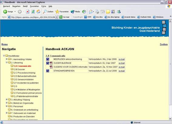 te realiseren. In april 2005 is de operationele omgeving aan KJPON opgeleverd. Via het Intranet worden de handboeken per